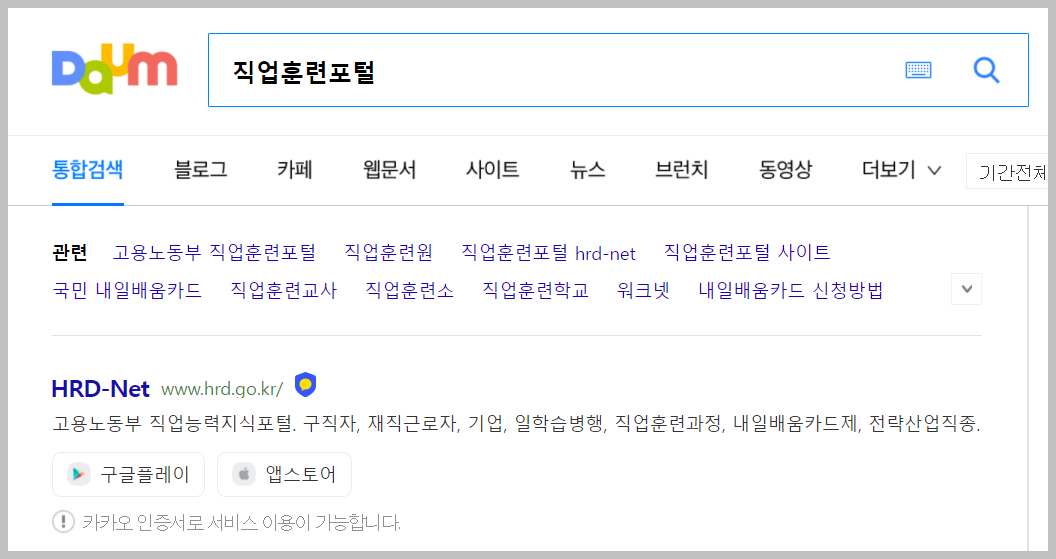 고용노동부 하드넷(HRD-net)의 원래 이름은 직업훈련 포털입니다. 그래서 다음에서 고용노동부 하드넷이라고 검색을 하면 나오지 않습니다.