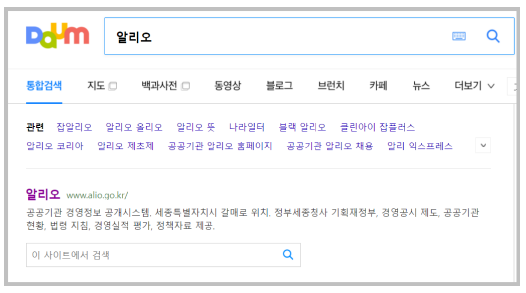 다음에서 간단하게 알리오라고 검색을 하면 해당 사이트로 쉽게 들어갈 수 있습니다.