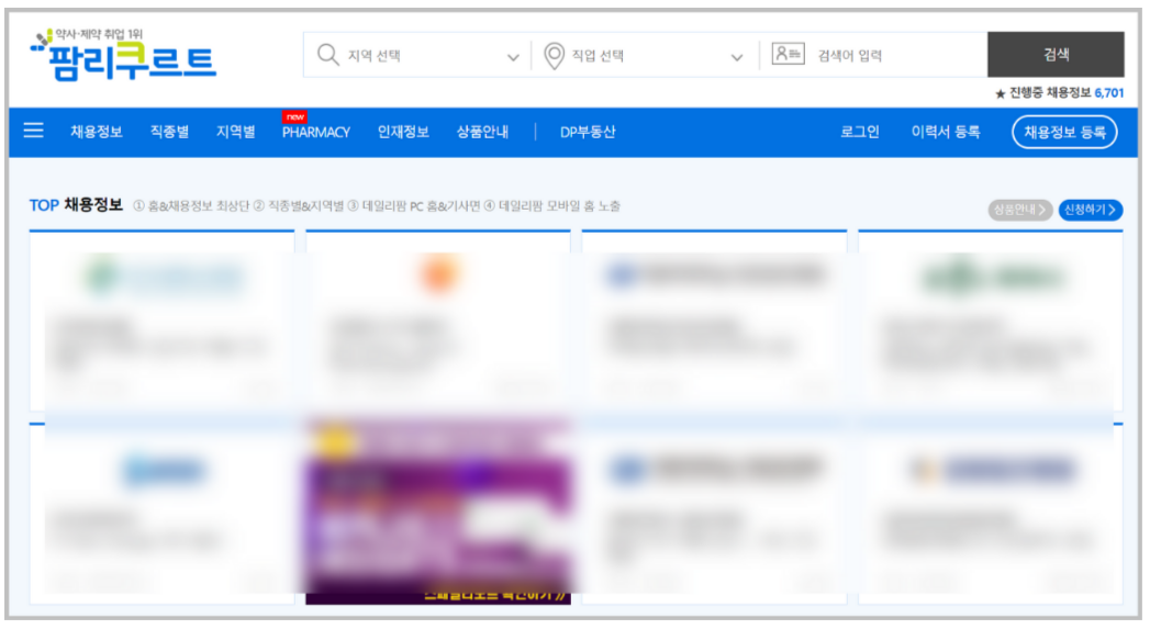 팜리쿠르트 홈페이지에 들어가면 아래와 같은 화면이 나오게 됩니다.