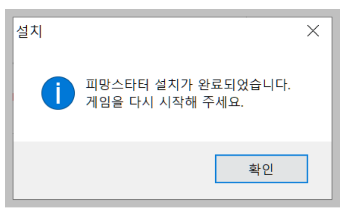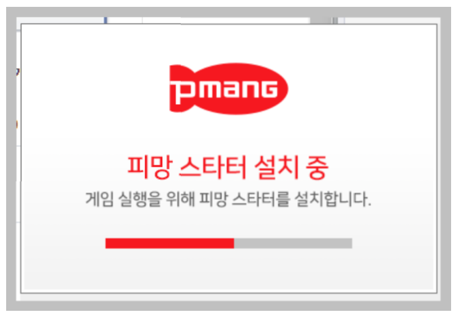피망 스타터를 설치는 걸리는 시간이 길지 않습니다. 눈 깜작할 사이에 설치가 완료가 됩니다. 위와 같은 메시지가 나오면 다시 한번 '대국장 입장하기'를 클릭을 하시면 설치가 진행이 됩니다.