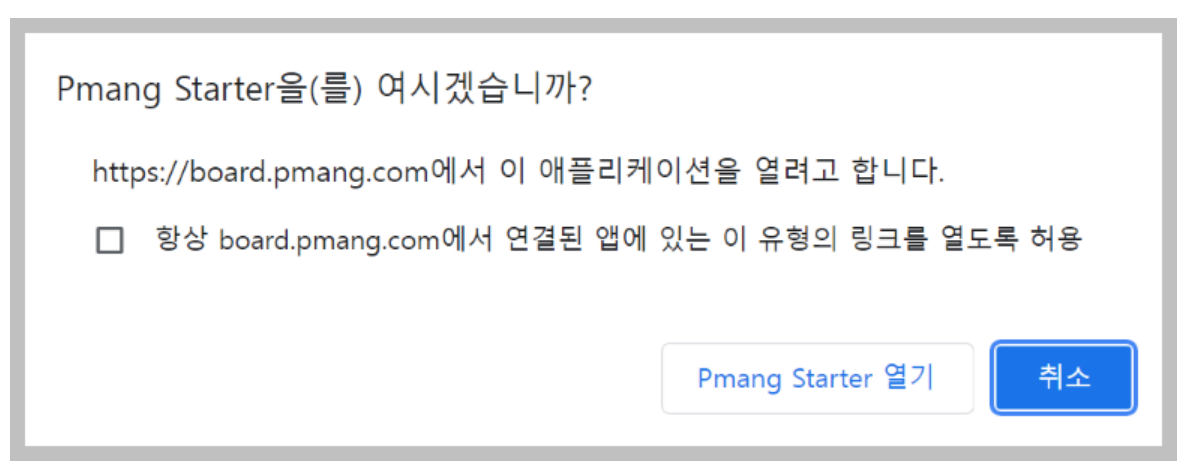 피망 스타터(Pmang Starter)가 이렇게 실행이 됩니다. 여기에서 Pmang Start 열기를 클릭을 해 줍니다.