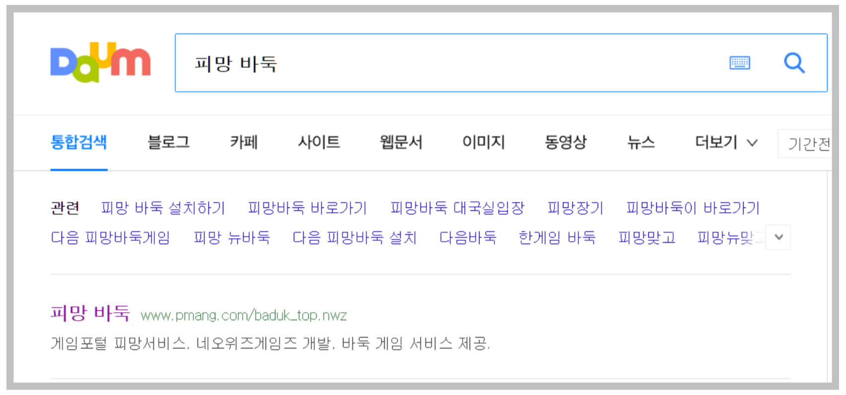 다음 사이트에서 '피망바둑'이라고 검색을 하시면 첫 번째로 나오는 것은 피망 오리지널 홈페이지입니다.